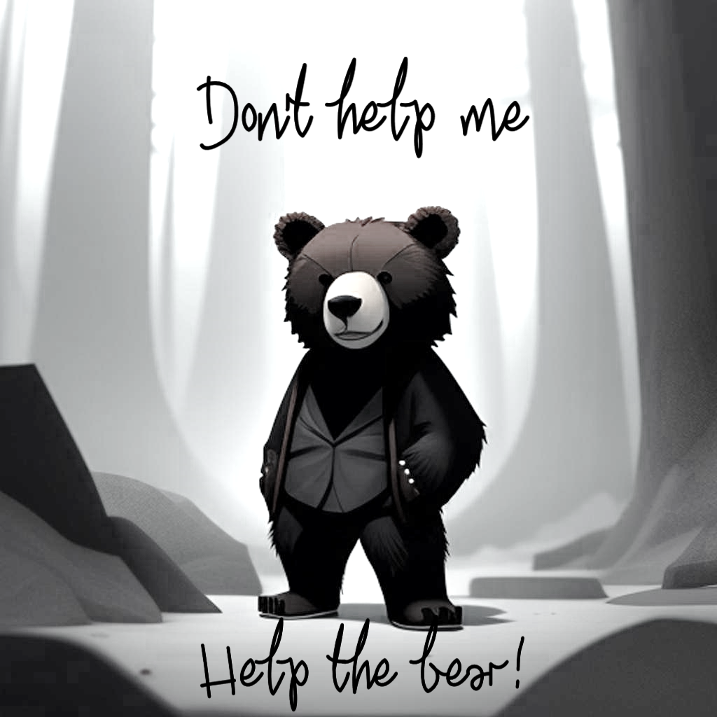This hoodie features a bear in the woods that says "Don't Help Me Help the Bear"